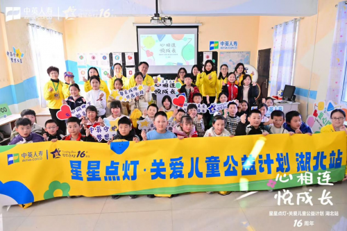 2025年11月21日,中英人寿“星星点灯·关爱儿童公益计划”走进湖北省孝感市邹岗镇中心小学,成功举办以“心相连 悦成长”为主题的公益关爱活动。今年是“星星点灯”项目持续开展的第16年,活动通过物资捐赠、艺术课程、手作分享等形式,为乡村儿童送去温暖与陪伴,助力他们身心健康成长。